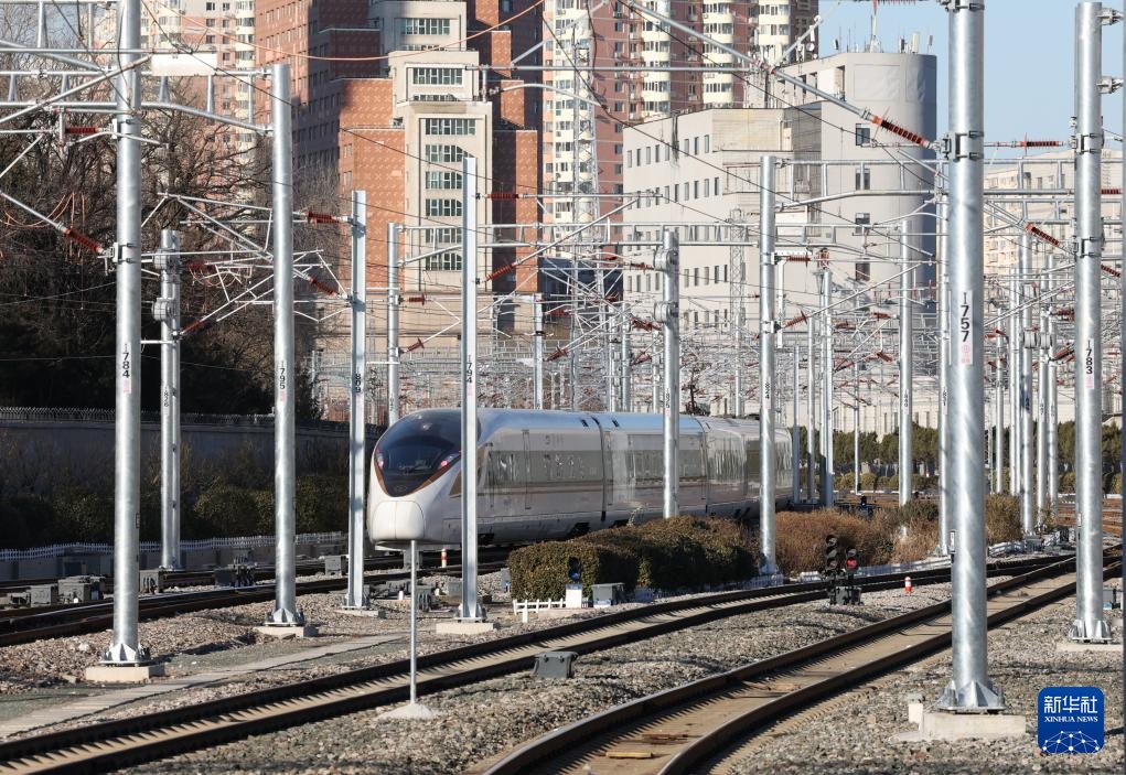 1月21日,一列高铁列车驶出北京西站。新华社记者 张晨霖 摄